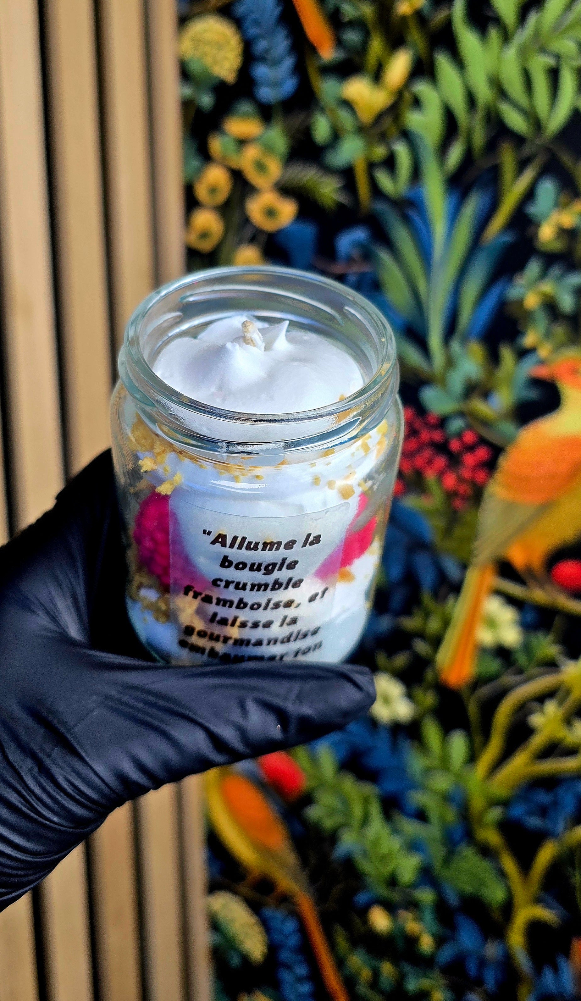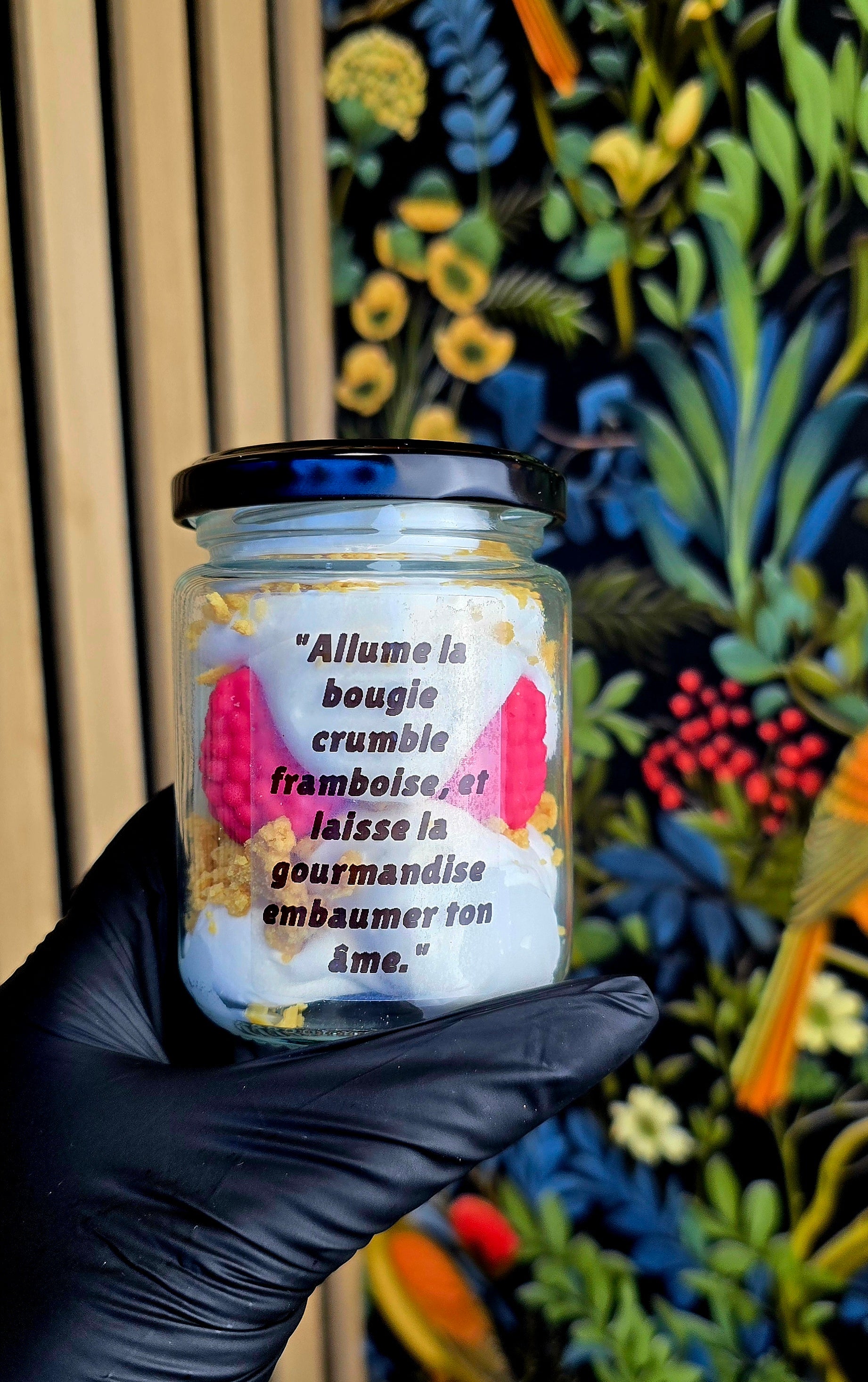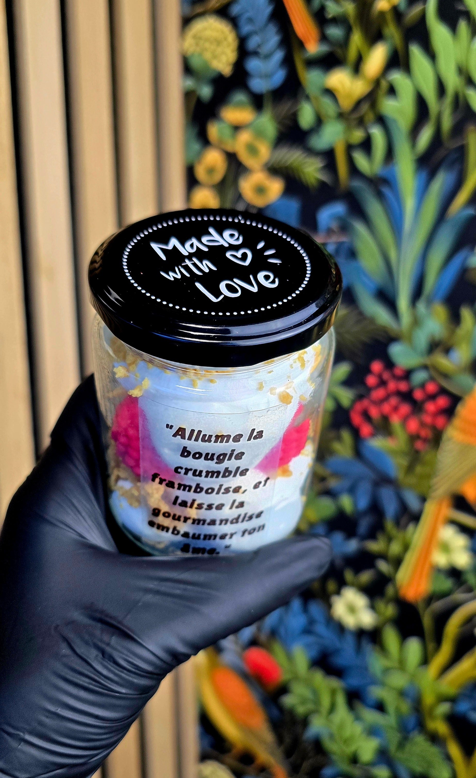 Plongez dans une atmosphère douce et gourmande avec notre bougie Crumble Chantilly Framboise.