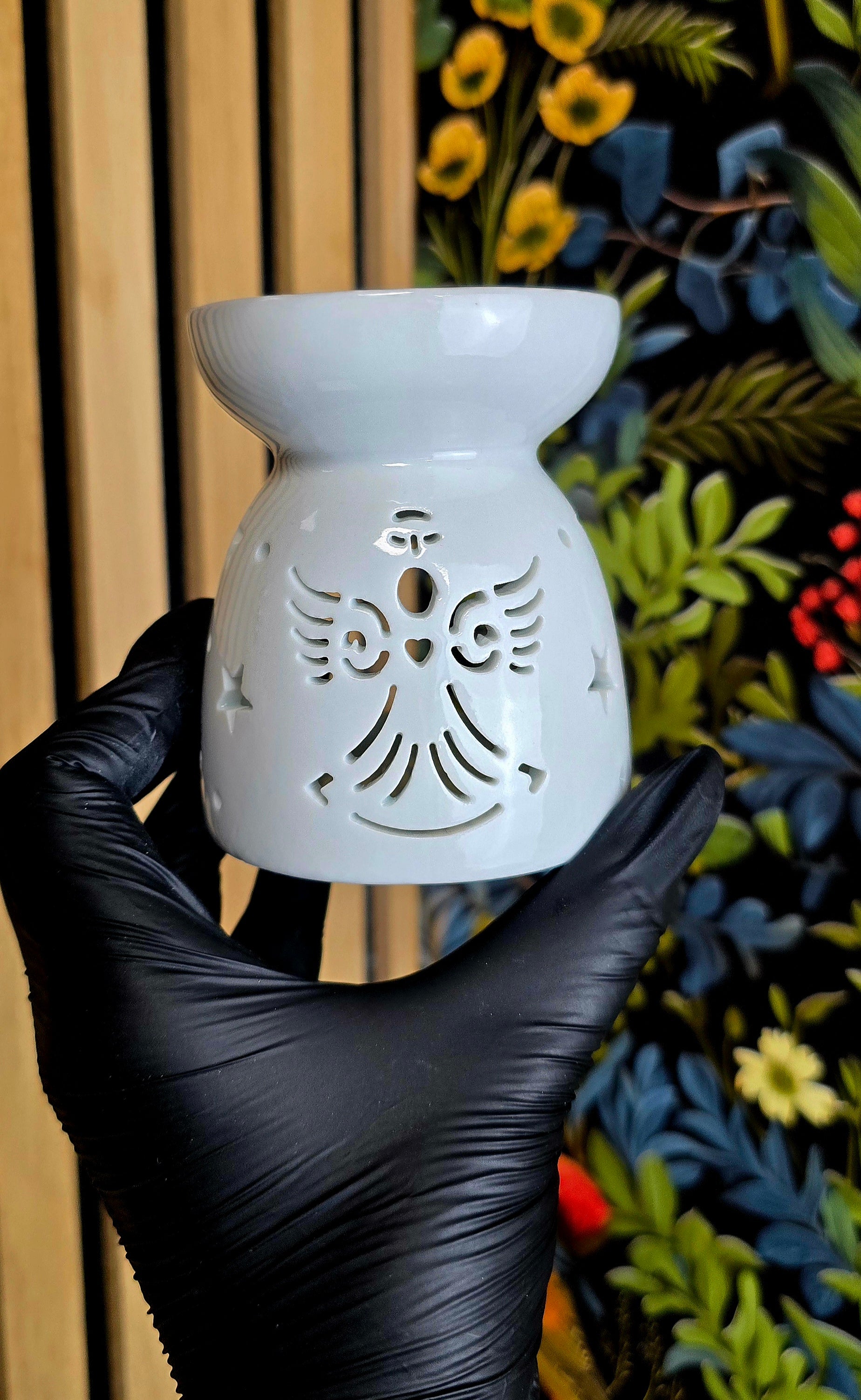 Apportez une touche de magie et de douceur à votre intérieur avec ce superbe brûleur à fondants parfumés. Son design élégant, en céramique blanche, est orné de délicates découpes en forme d'ange.