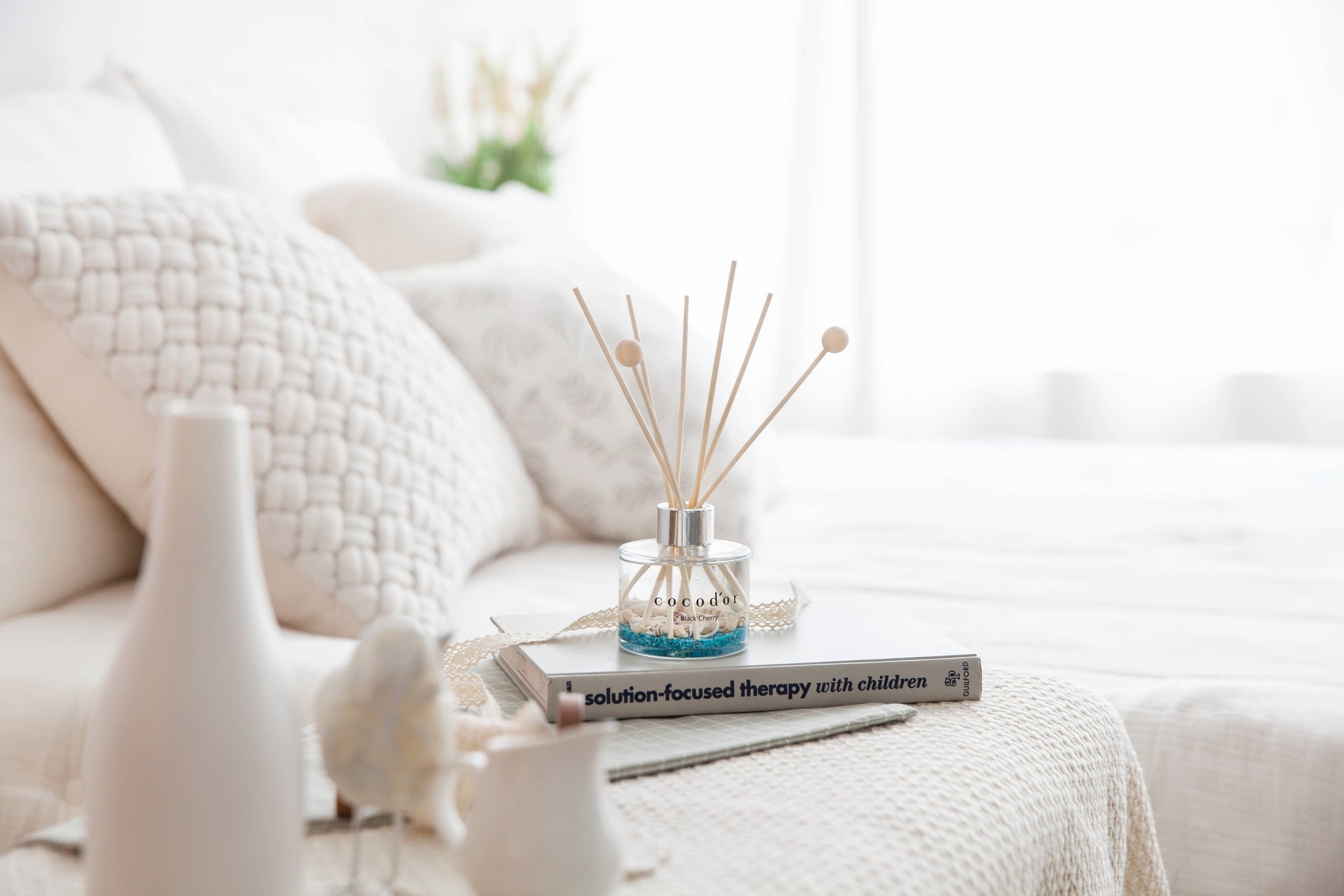 Diffuseur Aqua Cocodor 190ml (6.4oz) au parfum Pure Cotton + 5 bâtonnets de roseau blancs + Sable bleu et véritables coquillages