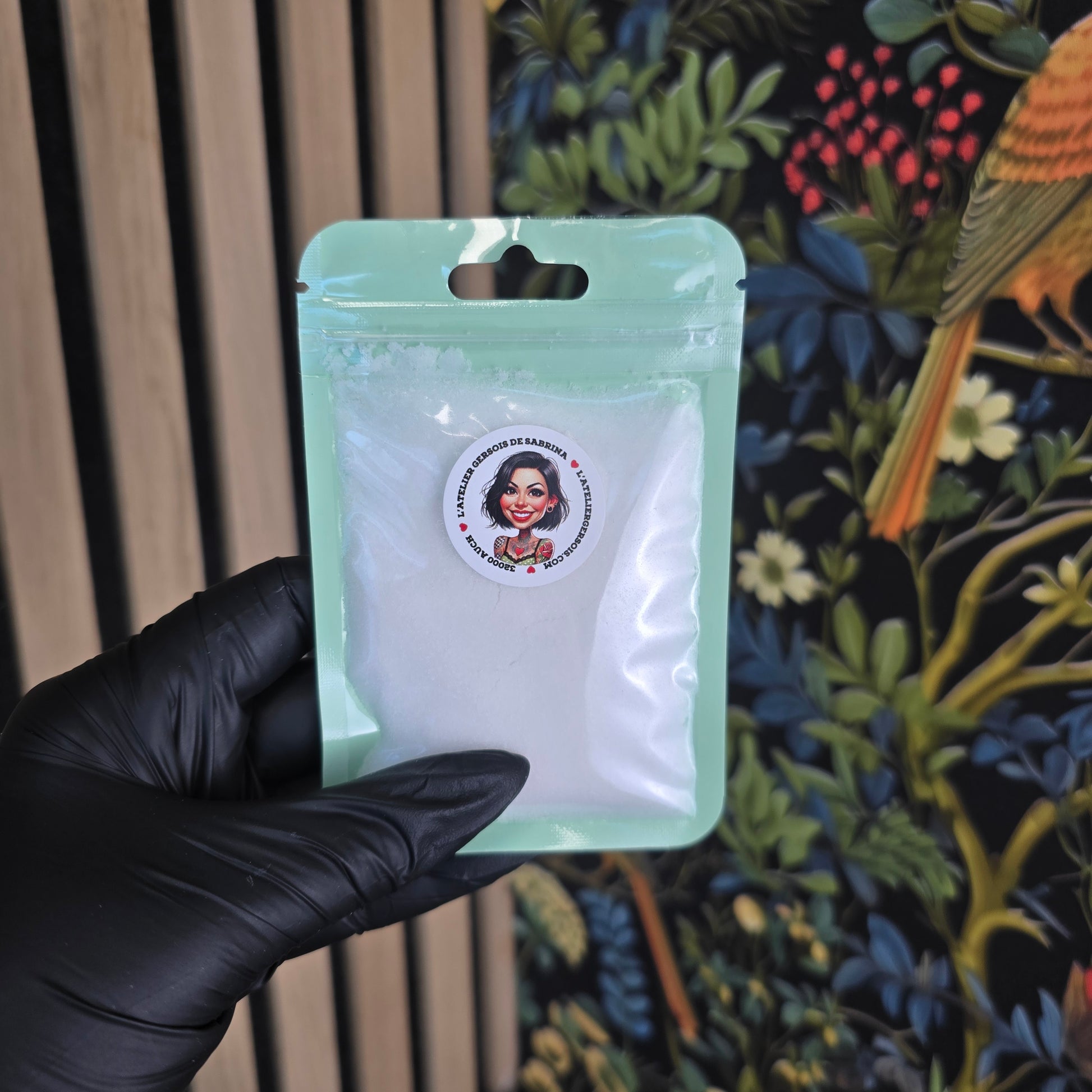 Ma poudre parfumée maison associe deux ingrédients simples et sûrs : du bicarbonate de soude alimentaire et des huiles parfumées de Grasse.